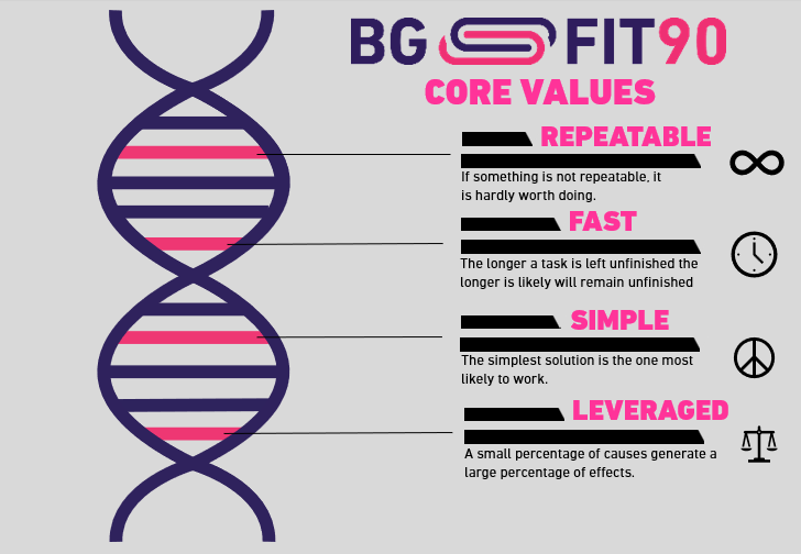 Making something repeatable is making it easy because every time you do it you have to think about it less. Once it becomes a habit, it’s much easier to execute. The BG.FIT90 process encourages consistency.